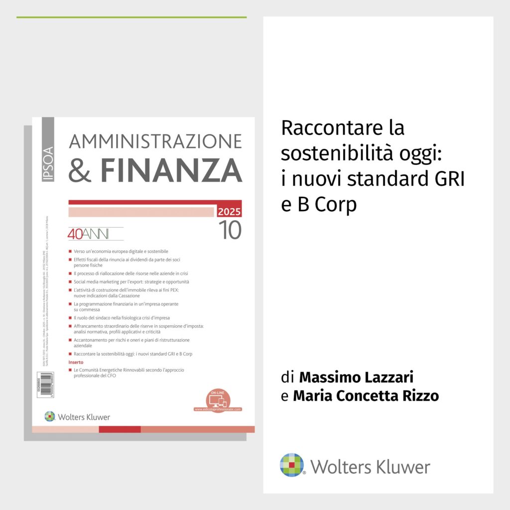 È uscita la nostra “Guida sui nuovi standard GRI e B Corp per la rendicontazione sulla sostenibilità ambientale” pubblicata da Ipsoa Editore!